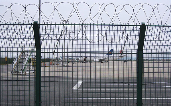 近年來,機場護(hù)欄網(wǎng)被廣泛應(yīng)用在機場,軍事基地等高安全場所。(如果在機場護(hù)欄網(wǎng)頂部加裝刀片刺絲、刀片刺繩后又很好的增強了安全防護(hù)性能。)